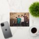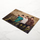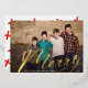Merry Script in real gold, wishing your loved ones in style. Your photo on the back or current backing pattern. Traditional Calligraphy style. Lettering style. Big photo design. Happy, festive design. Merry Christmas in beautiful gold script.