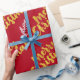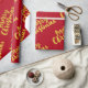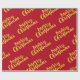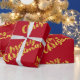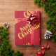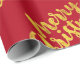 Gold Merry Christmas Script Calligraphy on Red Wrapping Paper