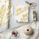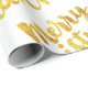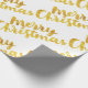 Gold Merry Christmas Script Calligraphy on White Wrapping Paper