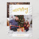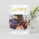Gold Merry Photo Collage Grey Stripes Christmas Holiday Card