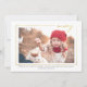 This holiday card features the text Merry in a handwritten script font in faux gold and a frame. The back features a gold diagonal pattern with an optional second photo