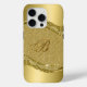 Elegant and unique gold tones shiny metallic design with stainless steel look on both ends of the case design. Golden tones diamonds texture background. Large monogram is optional. It comes in silver tones.