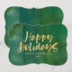 Gold metallic happy holidays corporate Christmas / holiday card. With hand painted green backer. This modern corporate holiday card will make the right impression for your company.