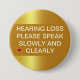 Gold Metellic hearing loss 3 inch button is designed by special request from a customer. This 3 inch button can be used to alert people you are hard of hearing. I designed this with a red heart as a reminder that you are loved and for those you talk with that you appreciate their thoughtfulness towards you. It will give the other person notice to take special care in talking. These are great as a gift for somebody you know who experiences hearing loss.