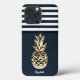 Gold Metallic Pineapple Navy Blue Stripes Case-Mate iPhone Case