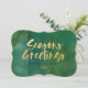 Gold metallic seasons greetings corporate Christmas / holiday card. With hand painted green backer. This modern corporate holiday card will make the right impression for your company.