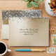 Faux gold metallic with silver glitter splash on back flap and address on bottom. Glitter splash on front of envelope. Simple and yet so beautiful and elegant. Make a statement with this chic envelope. All your guests will love receiving their invitation in such a lovely envelope.