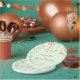 Customisable name bridal shower party plates in light pastel mint green and white stripes pattern, gold confetti pattern and elegant hand lettered style text.