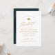Gold simple graduation invitation with modern hand written calligraphy and grad cap, personalized photo on the back, simple and unique. Custom it with your own photo and grad party information.