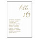 Modern table numbers card featuring black handwritten script and minimalist typography. Personalise by adding your details. This gold table card is perfect for weddings, bridal showers, baby showers, and other events.