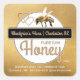 Modern honey label on gold background with “Honey" written in Vintage stylised font.