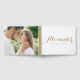 Elegant and modern wedding guestbook featuring gold modern script with photo back. Customise by adding your own details and photo. Other colours are available.