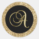 Gold monogram A Black-black, Classic Round Sticker