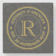 Gold Monogram Black Leather Wedding Anniversary Stone Coaster
