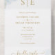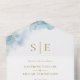 Gold Monogram Blue Watercolor Wedding All In One Invitation
