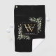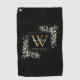 Gold Monogram Elegant Modern Greenery Black Golf Towel