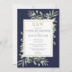 Gold Monogram Greenery Navy Blue Couples Shower Invitation