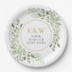 Gold Monogram Greenery Party Celebration Paper Plate