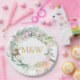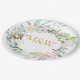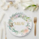 Gold Monogram Initials Roses Garland Floral Paper Plate