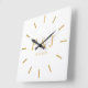 An elegant and minimalist square wall clock. The clean white face is enhanced by large initials (E & J) and a customizable date in a luxurious gold tone. Black hands and gold dash markers add a touch of sophistication. Perfect as a wedding gift, anniversary present, or for chic, modern home decor.