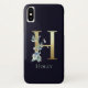 Gold Monogram Letter H Navy Blue Floral Name Case-Mate iPhone Case