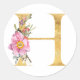 Gold MONOGRAM letter H with flowers Classic Round Sticker