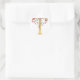 Gold MONOGRAM letter T with flower Classic Round Sticker