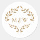 Gold Monogram Luxury Leaves Crest Classic Round Sticker