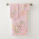 Gold Monogram Name Greenery Pink Agate Geode Bath Towel Set