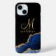 Gold Monogram Navy Blue Gold Glitter Agate Case-Mate iPhone Case