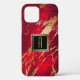 This bright phone case in red and gold almost seems to glow! It features your monogram in gold at the centre of a black square banner which is double lined in shiny gold. The banner is placed on a vivid gradient red background that looks as if it has been splattered with gold metallic paint. Unique and very attractive! *Please note - the metallic look is simulated, and the case does not contain metallic paint, but only the image.