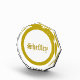 Fancy gold letters on a white background. Name and background colour can be changed by the customer.