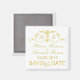 Gold monogram Save the Date magnets with gold decor and personalised monograms, names and date.