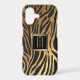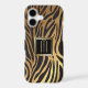 This elegant phone case gives a modern look to the traditional tiger stripe pattern in black on a burnished gold background. Your monogram is in gold at the centre of a black square banner which is double lined in shiny gold. Classy and timeless! Thanks to www.ephrazydesign.etsy.com for graphics used in this design.