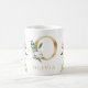 A personalised coffee mug with a faux gold letter "O" monogram, featuring decorative watercolor floral and foliage illustrations. Easily customise it with your name or create a unique gift for your loved ones.