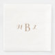 Gold monogram White Dinner Napkin. Elegant. Wedding. Combination font.