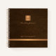 Classy exclusive looking office or personal monogrammed notebook featuring a faux copper metallic gold glitter square with your monogram name initials and a sparkling stripe over a stylish dark brown faux leather background. ++++++++++++++ Suitable for small business, corporate or independant business professionals, personal branding or stylists specialists, makeup artists or beauty salons, boutique or store managers. +++++++++++++++ Please note that the leather texture and glitter sparkle effects are PRINTED.