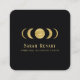 Moon phases in a gold texture. Name and text in matching golden hues. On back a beautiful golden crescent surrounds a celestial full moon. Customise with your business details and information.