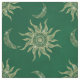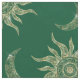A mystic gold crescent moon and wavy rays sun mandala strong green universe nebula sky celestial pattern, featuring crescent stage glowing moons with mandala flowers, and multiple sun wavy rays mandala pattern, floral and leaves doodling art, made with a faux yellow gold texture line art, galaxy stars, the night sky, strong green nebula background. Beautiful, mystical, cute moon and sun henna mandala style universe theme pattern.
