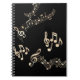 This stylish custom notebook features a musical theme. Gold sheet music notes are whimsically placed across a black background. It's a perfect gift for the musician in your life.