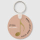 Faux gold musical note on a (custom colour) pinkish-keychain, personalised with her name and text