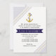 Gold, navy anchor, stripes nautical beach wedding invitation