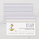 Gold, navy anchor, stripes nautical wedding RSVP Card