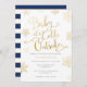 Faux Gold Foil Baby it's Cold Outside Baby Shower Invitation, with navy and gold striped back.