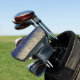 Navy Blue and Gold Sparkle Glitter Script Monogram Name Golf Putter Cover. This makes the perfect sweet 16 birthday, wedding, bridal shower, anniversary, baby shower or bachelorette party gift for someone that loves glam luxury and chic styles.