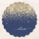 Gold Navy Blue Glitter Script Monogram Girly Name Paper Coaster