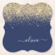 Gold Navy Blue Glitter Script Monogram Girly Name Paper Coaster