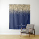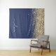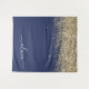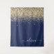 Gold Navy Blue Glitter Script Monogram Girly Name Tapestry