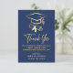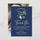 Gold Navy Blue Modern Graduation PHOTO Thank You Card