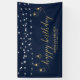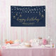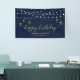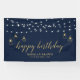 This event banner design features stylish gold geometric string lights and "Happy Birthday" typography on a navy blue background. This congratulations banner is the perfect decoration for modern events. You can customise the name and text at the bottom of the banner for your events.